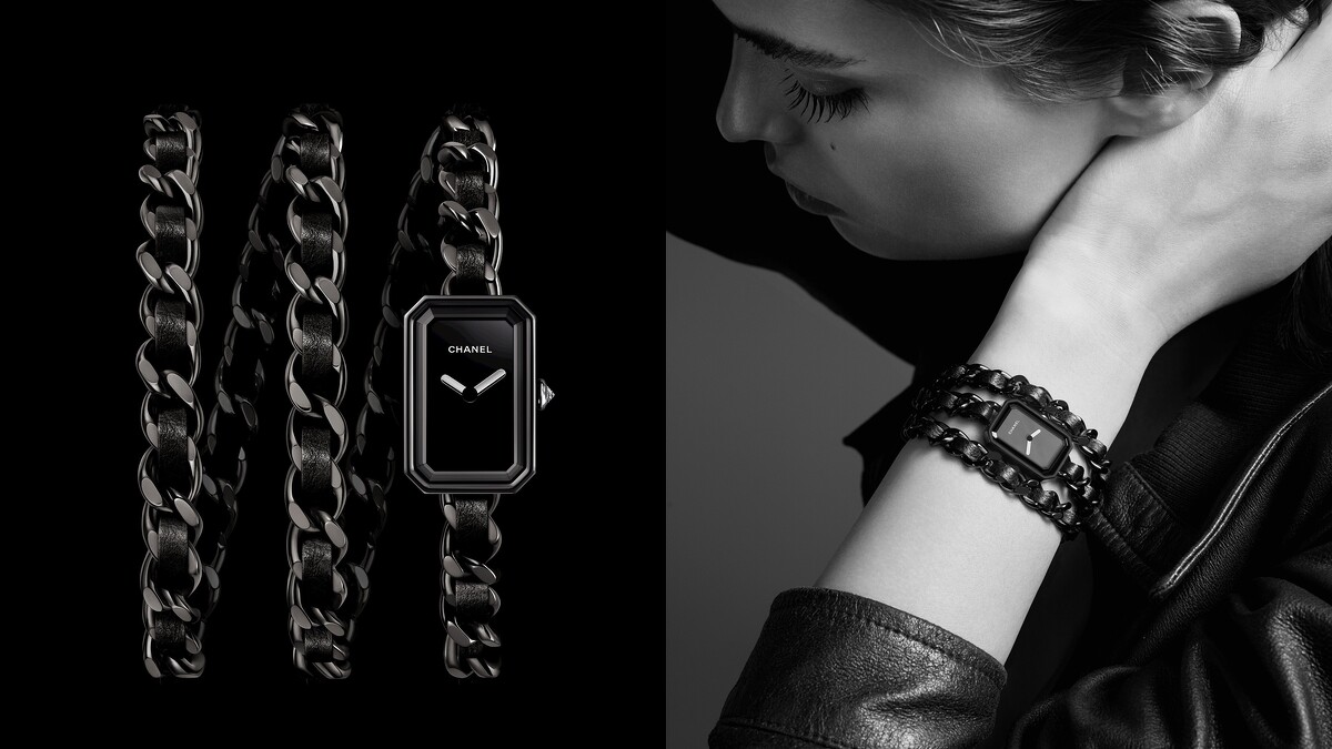 小香粉絕對不能錯過Première系列!這是香奈兒於1987年推出第一款專為女性設計的腕錶,八角型的錶殼造型來自巴黎芳登廣場(Place Vendôme)與No.5香水瓶蓋。此系列還有另一特點是結合皮革穿鍊與珠寶配戴的概念,大膽延伸錶帶長度,喜歡嘗鮮的你不妨將其用作頭飾或是項鍊創意配戴。2019年全新Première Rock腕錶,錶帶及錶殼經過ADLC類鑽碳處理,再搭配黑色漆面錶盤,深邃的黑色為錶款帶來搖滾又帥氣的風格。