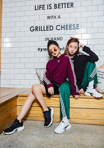 兩人的英文名都叫JULIA、同樣是在國外成長,有著獨立冒險精神、熱愛音樂、不強求甜美夢幻路線、就是喜歡隨興街頭風格、生活點滴比刻意營業更重要、化妝最在意唇妝、球鞋控…這次更是一同用默契十足的自我樣貌,將adidas Originals P.O.D.鞋款穿出專屬自己的本色Style!無論是CRAZIE JULIA的率性歐美風或是吳卓源的混搭風,一起擺拍就是怎麼看怎麼搶眼!