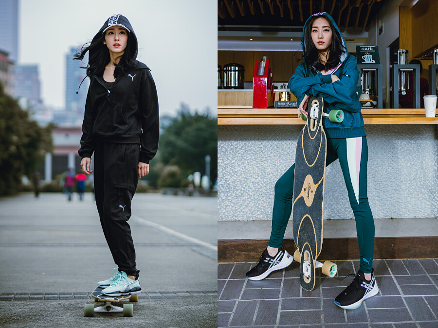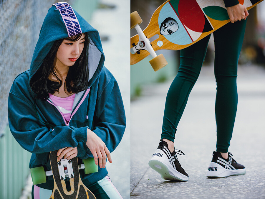 不是擺擺樣子而是全力以赴,這點跟惟倫自己在演藝之路的堅持如出一轍,不盲從選擇速成輕鬆之路,以低調紮實忠於自我的態度,在快速更迭、競爭激烈的演藝圈中,就像溜著滑板看著快速閃過眼前景致般,只有堅定專注的心靈,才能停格在最重要、最明確的那一瞬間。「滑板其實沒有大家想像中那麼難跟危險,練習過程中需要的是自信,相信自己會讓妳勇於嘗試並展開動作。」無懼未知的開始,與PUMA近年來不停強調呼籲年輕世代女子要勇於挑戰自我的主張不謀而合。