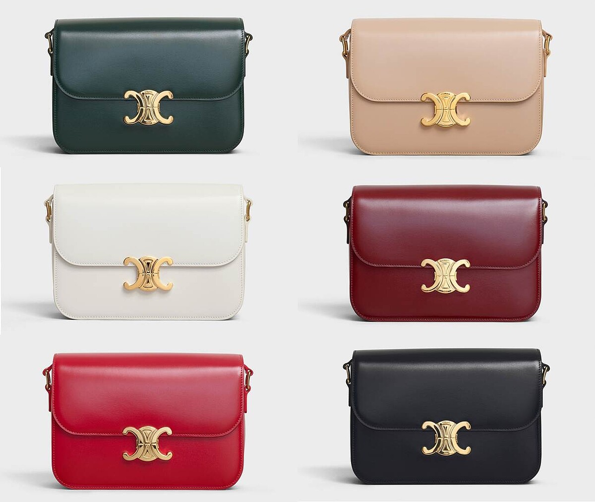 CELINE全新TRIOMPHE BAG系列提供不同尺寸與多種顏色的光滑小牛皮,除了能讓造型畫龍點睛外,TRIOMPHE BAG更是一款能經的起時間考驗,彰顯出眾品味的新時尚必備單品!