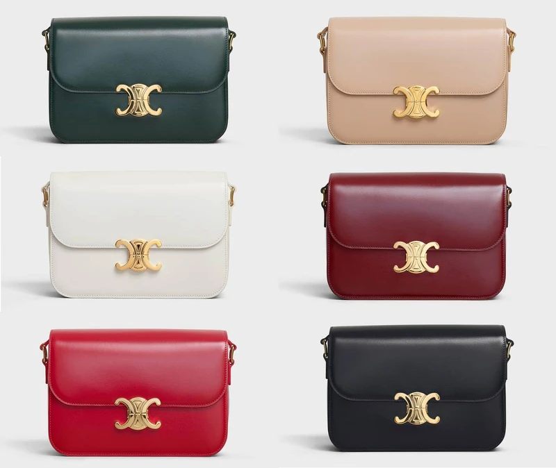 受1970年代CELINE標誌啟發,TRIOMPHE BAG其引人矚目的凱旋門金屬壓紋鎖釦,源自品牌創辦人CELINE VIPIANA在一次凱旋門前的拋錨經驗中,被正前方圍繞凱旋門的雙C 型TRIOMPHE鎖鏈吸引,1971年隨即將其融入作為品牌徽誌,並廣泛運用在包款、飾品、印花及鞋履系列上。