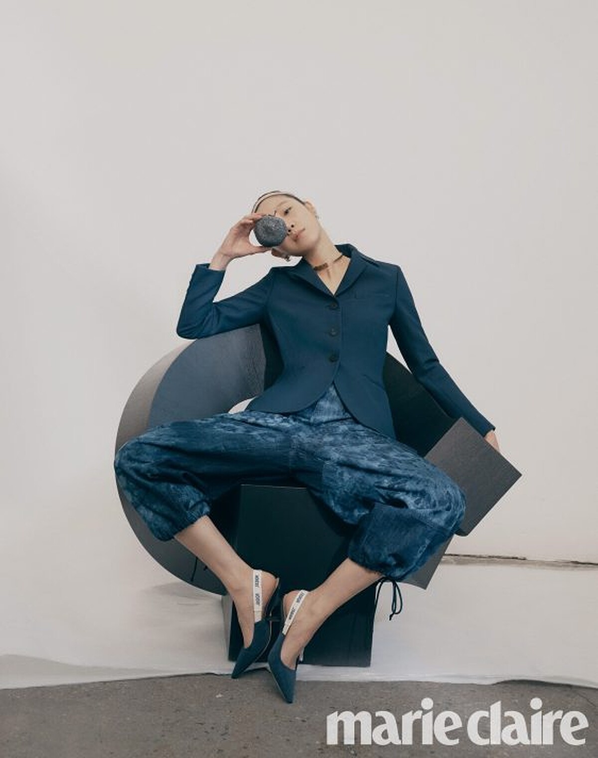 經過一系列仙氣、暗黑的風格,最後是換上帥氣十足的褲裝,搭配西裝式外套展現俐落、率性風格。