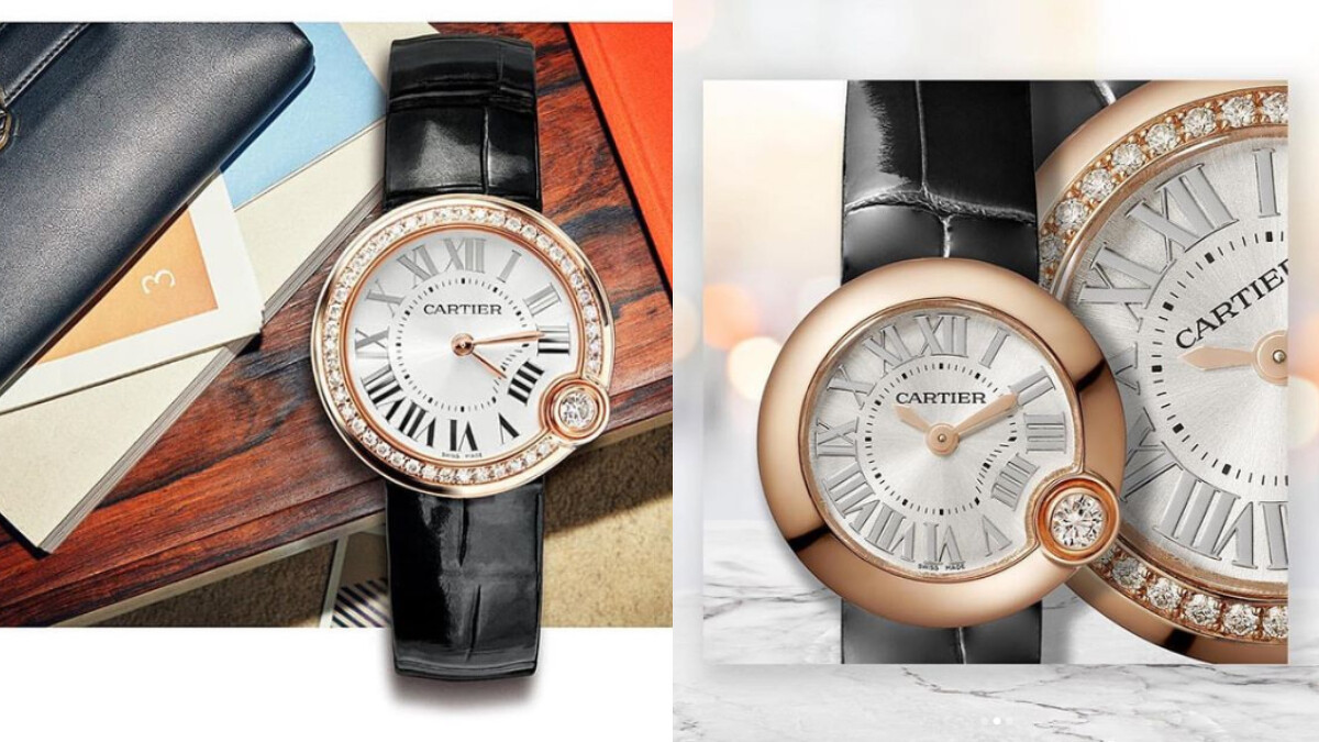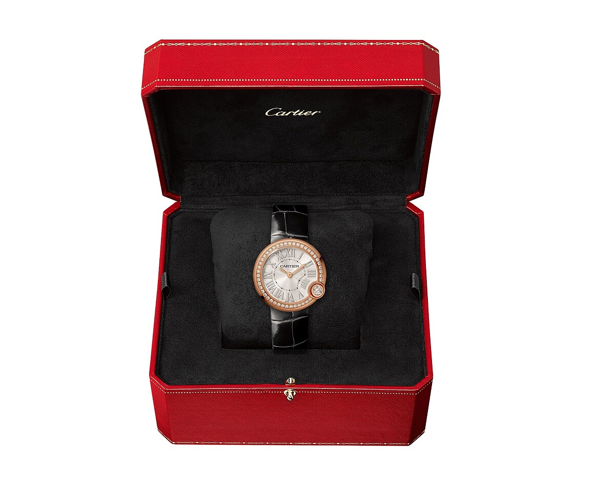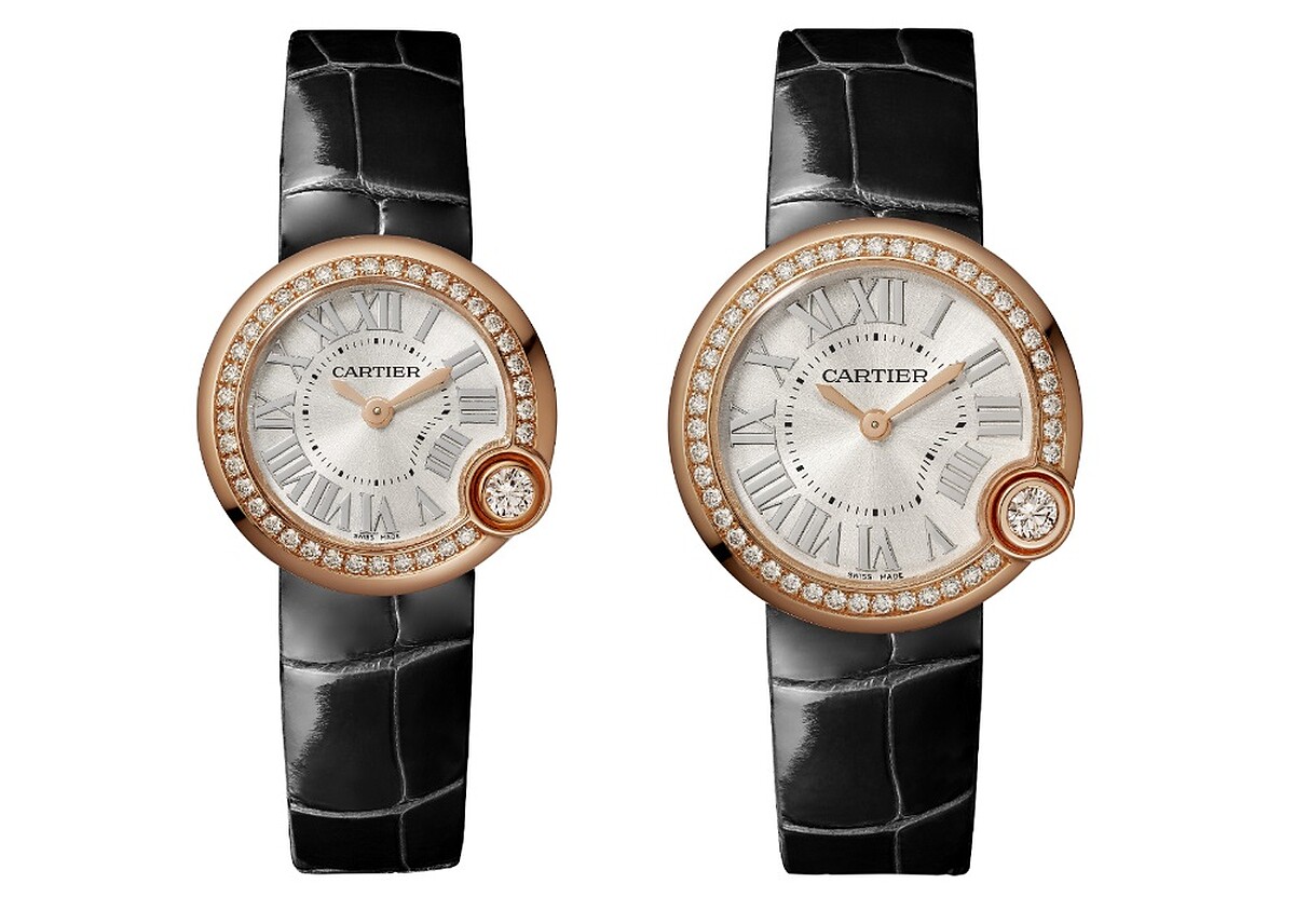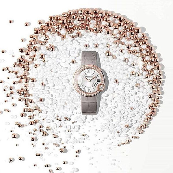 Ballon Blanc de Cartier 白氣球腕表,18K玫瑰金錶殼鑲嵌圓形明亮式切割鑽石(26MM、30MM)