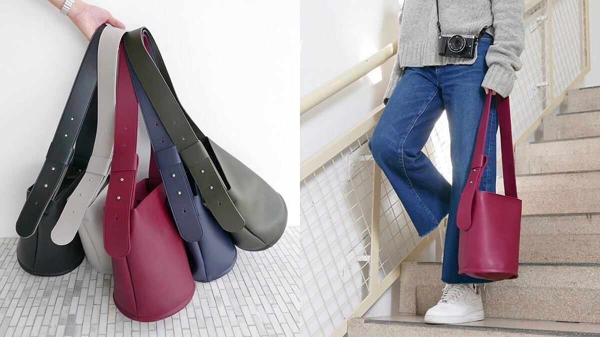 可以攜帶個人隨身物品、文件的水桶包,可以說是必敗第一名,有柔瑰粉、酒紅、淺灰、深藍、芥末黃、深黑等色彩選擇。
