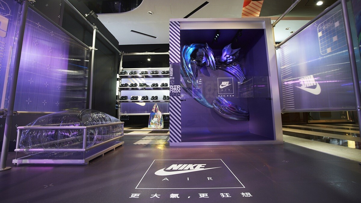 Nike Air實驗基地包含新光三越A11館建築外部放置上視覺強烈的Air擠壓感視覺意象,及一樓設立Air Tunnel空氣隧道以及各種實驗裝置,讓大家親自到場感受Nike Air的彈性、韌性、支撐力與氣體的流動。