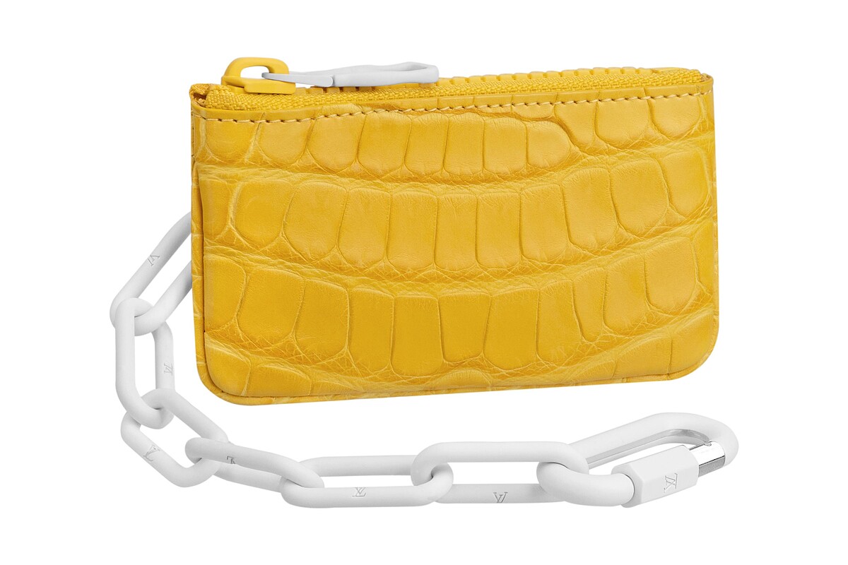 由設計師Virgil Abloh所設計的 POCHETTE VOLGA 鱷魚皮手包,NT$368,000,既可以做為小型手拿包,也可以做為錢包使用。另有貂毛後背包,貴氣滿點,能為平實簡單的裝束做點綴。