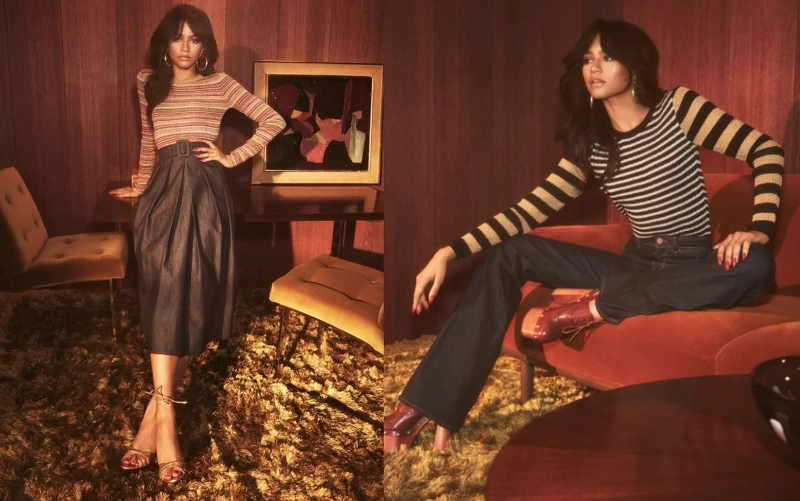 TommyXZendaya聯名系列,以70年代懷舊風情為設計發想,同時也讚頌著當時參與Battle of Versailles(凡爾賽之戰)時裝秀的美國模特兒,他們所散發出優雅自信的特質,系列服飾包括高腰牛仔喇叭褲、緞面襯衫、緞面連身裙、西裝外套、高腰半身裙、泳衣及配飾。系列廓型著重結構線條,以俐落時髦的剪裁帶出女性自信堅毅的態度,配色則選用勃艮第紅、雙色線格紋及深色丹寧布,此外,設計師也為系列打造一款以十二星座為發想的彩色緞面布料,為整體增添一絲俏皮感。