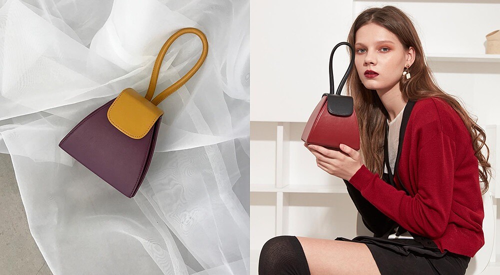 強調簡約的線條設計,並搭配繽紛的撞色系,而包包外觀更是市面上比較少見的形狀,不僅獨特更是時髦穿搭的必備配件。最重要的是價錢相當親民,就以韓劇中這款梯形包來說,售價是美金188元大約台幣5千多。