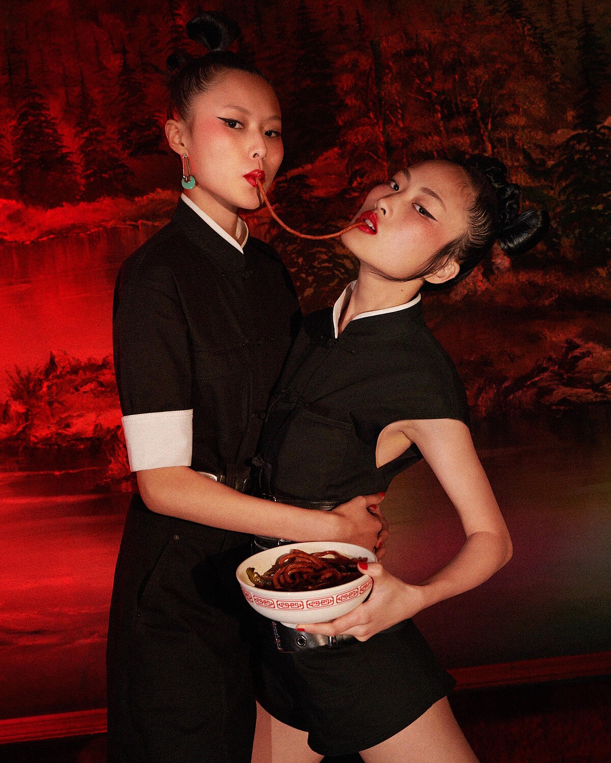 一下機就直奔會場的Alexander Wang絲毫沒有顯露疲態,隔天一早十點多的訪問,他神采奕奕提早在場等待。從小生長在加州,之後搬至紐約發展的大仁哥,謙虛說自己中文程度僅能簡單溝通,而他今年初推出的農曆新年系列就運用中文字體元素,華人過年傳統必備的紅包到他手中成為趣味十足的靈感,紅色皮革製信封袋附有磁扣,正面燙金字樣寫著「王大仁」三字簡直就像過年長輩發的紅包一樣,是一枚可當墨鏡包、小手拿包或雜物袋的時髦單品,售價台幣7980元。親自介紹這小包時,念到自己中文名字還不小心害羞笑出來,點影片聽他發音中文發音多標準。
