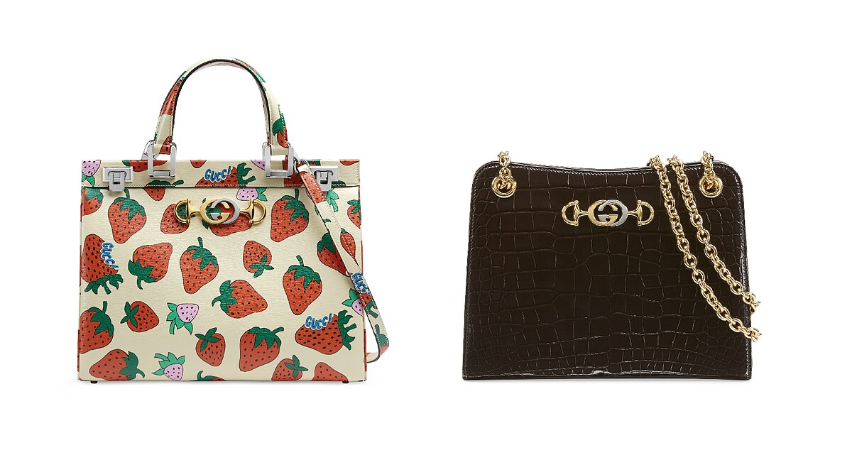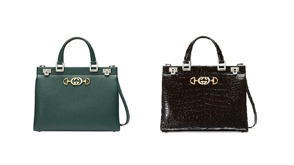 以復古元素玩出摩登印象的Zumi包款,源自Gucci 60年代古董包,結合了品牌兩大經典元素—金銀配色雙G Logo及馬銜鍊環,在不同尺寸的托特包或肩背包上都可見到,時尚兼具實用性的設計細節,除了可手提,可拆式的皮革背帶或船錨造型的金屬鍊帶,搭配多層拉鍊內裡收納,滿足了時下女性日常或晚宴不同的造型搭配需求。