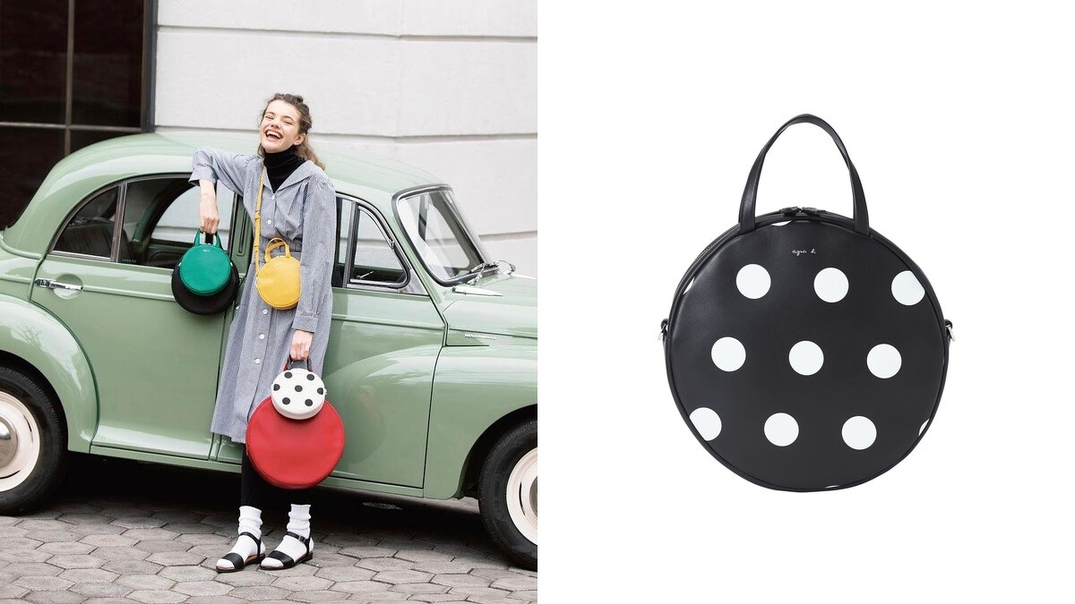 來自法國的agnès b.,今年春夏將原本就具有復古情懷的Marion包款換上波卡圓點全新外衣,推出白底黑點小型提包、黑底白點中型提包,以及Marion小零錢包等新品。