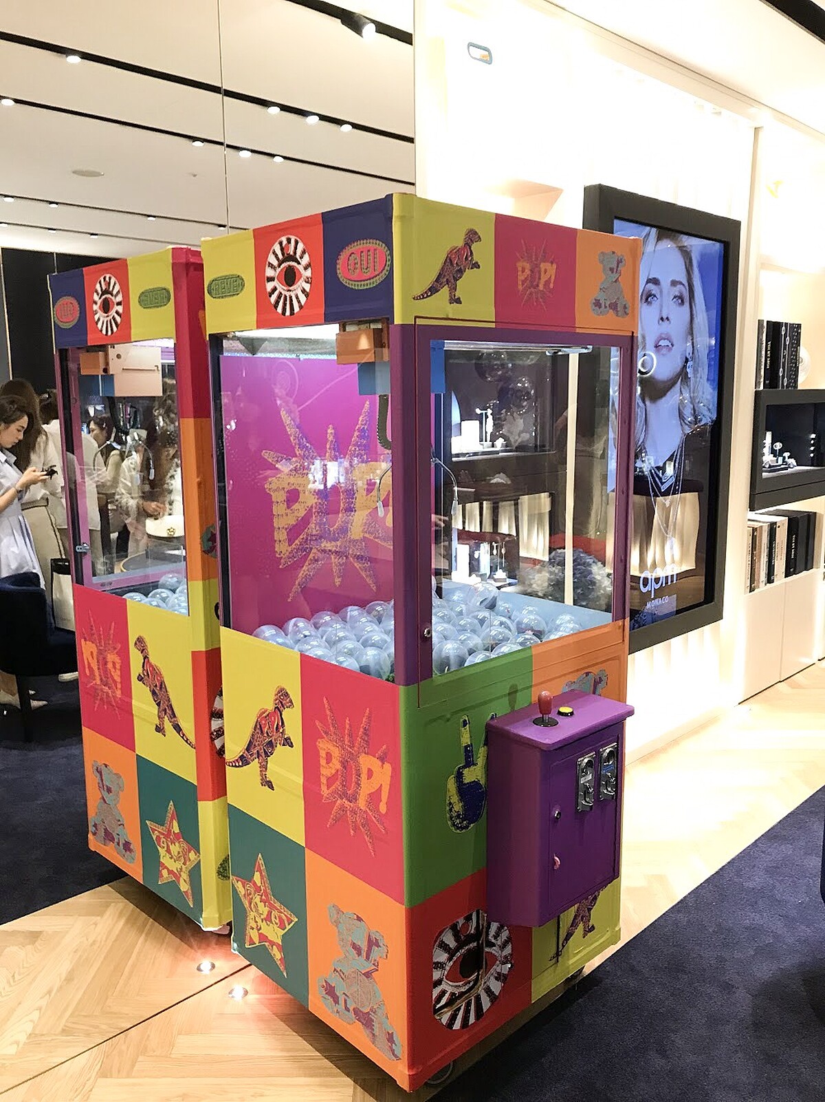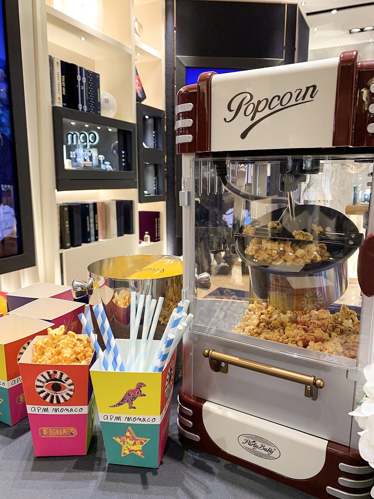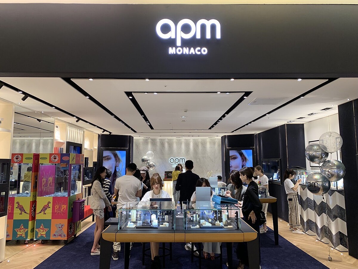 豪華旗艦店位於台北信義微風3樓,為了答謝台灣顧客的熱情以及提供更奢華的購物體驗,APM Monaco 將旗艦店整體改裝設計煥然一新,並在3/28重新盛大開幕,除了店面的空間設計大大提升,最值得一提的是位於櫃檯的後方高度質感的大理石牆面,一踏入櫃上馬上印入眼簾,令人印象深刻,飾品的陳列擺放動線也更流暢舒適。當天櫃上的開幕活動及新品預購會現場熱鬧非凡,客製爆米花及飲品,趣味夾娃娃機等等,出席的部落客與貴賓們都是品牌多年的支持者也在第一時間搶購新品。