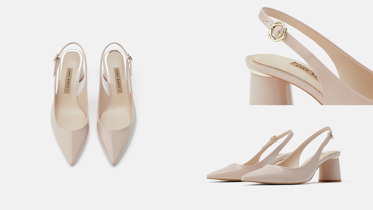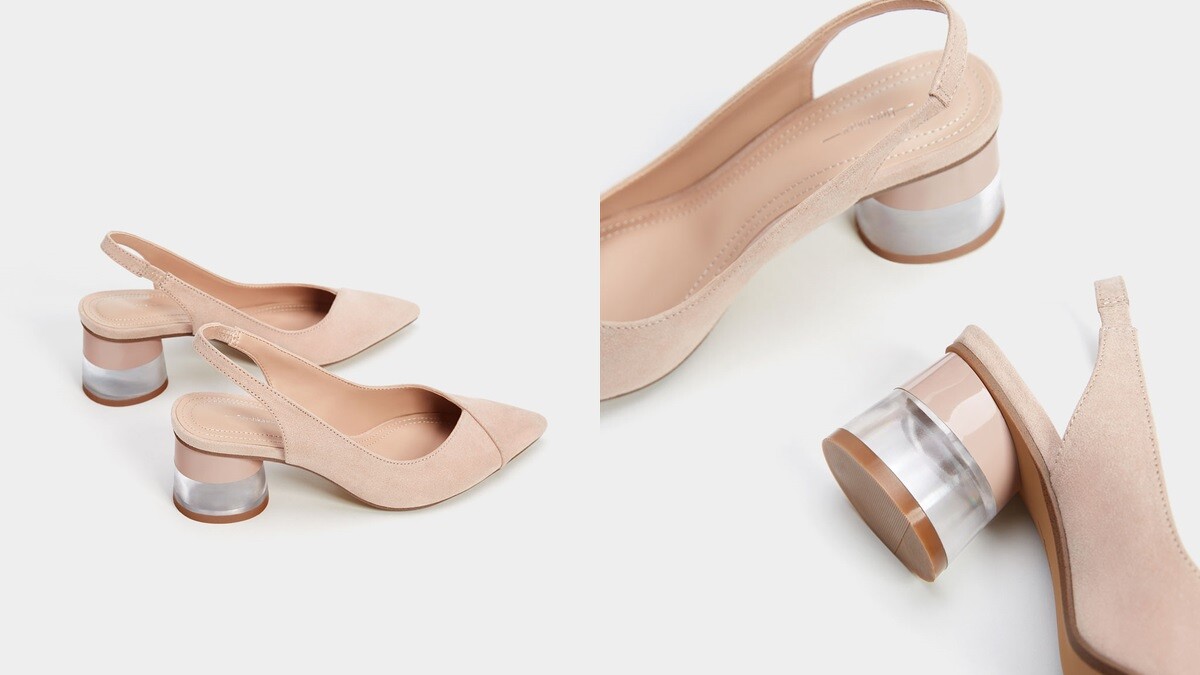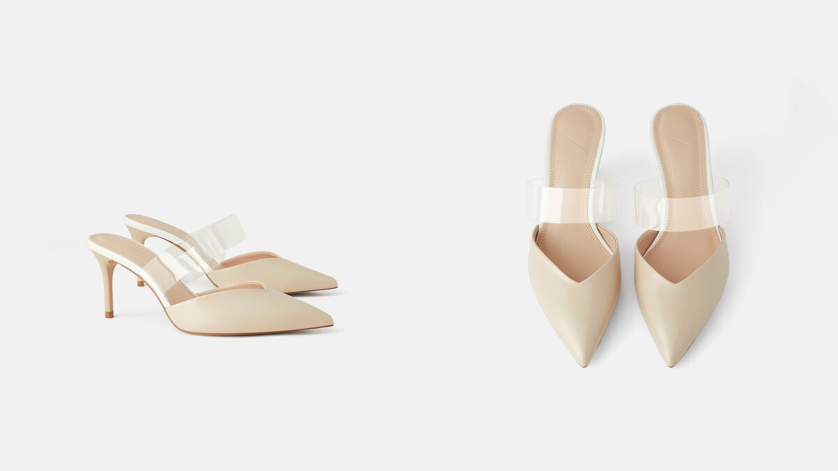有別於單純裸膚色的高跟鞋,Zara這次春夏還推出搭配塑膠材質的尖頭跟鞋,可以搭配俐落褲裝、雪紡洋裝穿搭,應景春夏浪漫輕鬆的氛圍。
