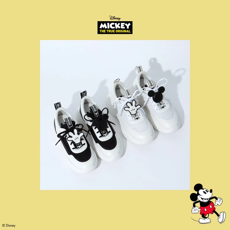 和迪士尼推出多次聯名系列鞋款的台灣鞋履品牌Grace gift,這回再度出新招,除了一直都是熱賣常勝軍的平底鞋、小白鞋…等款式,這次終於推出老爹鞋了!風靡街頭好幾季的老爹鞋加上米奇,酷味中又帶點萌,內側鞋底壓印上米奇90週年圖樣,鞋身不但有織帶點綴,更附上米奇頭和手掌扣飾,可以自由扣在鞋子正面或鞋後跟,讓每日穿搭能隨心情玩出不不一樣的小巧思,老爹鞋有全白和黑白兩種配色,售價台幣1880元。全系列品項共有四種鞋款、四種包款,於4月10日限量發售。