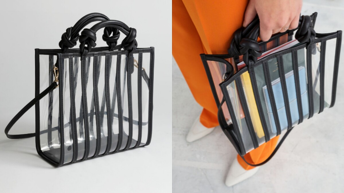 近幾年盛勢不減的PVC材質不但時常被設計師採用至時裝上,更常出現在包包和鞋履等配件上。而今天介紹的這款來自瑞典品牌 & Other Stories的手提托特包,將透明PVC作為包款的主形體,在縫製上黑色皮革,打造一款既摩登又具質感的風格創意手袋,尤其是提把處的扭結設計,更為整體佐上優雅氛圍。(售價約NT2,440)