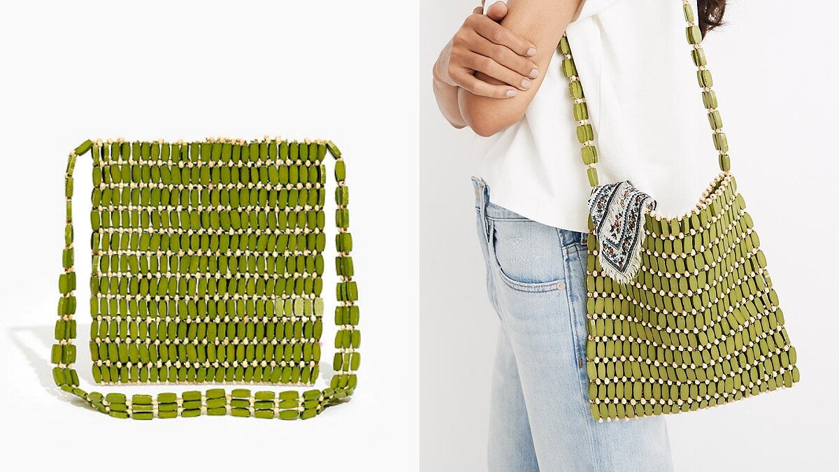 夏天到了,是時候把那些充滿朝氣氣息的色彩單品拿出來啦!像是萊姆黃、檸檬綠、甜桃粉…都能替造型添增上可愛的迷人韻味。而這款由木頭串珠成的肩背托特袋不僅極具有機質感,穿插於中的米色珠子也替設計裝點上自然的線條。(售價約NT3,60)