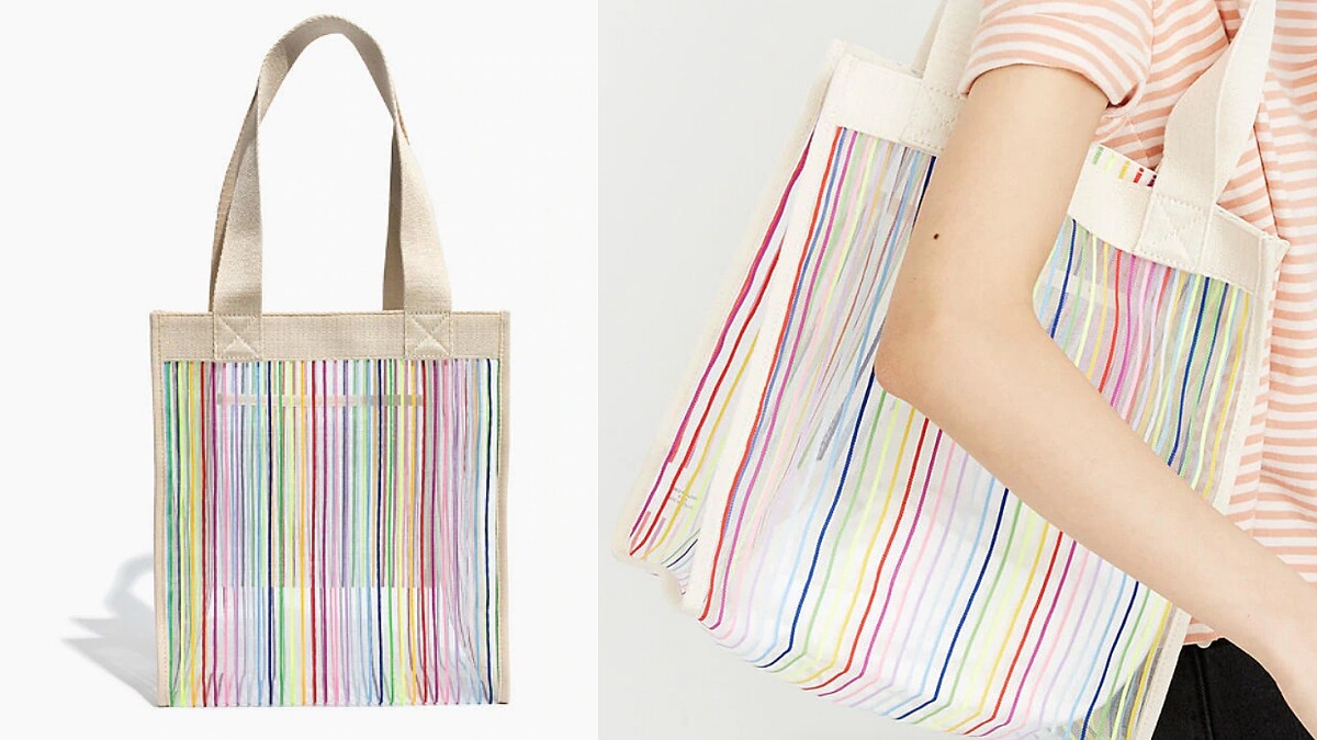 傳統市場的購物袋也能躍升為時髦單品?隨著潮流趨勢與時代思想的演變,那些你曾未想過甚至日常生活中的物品…均悄悄成為了設計師們天馬行空的創作靈感,而這款包也不例外,由七彩細膩的合成纖維編織而成,彷彿就像升級版的市場購物提袋般新鮮有趣,微微透視的果凍感更增添了可愛氣息。(售價NT1,527)
