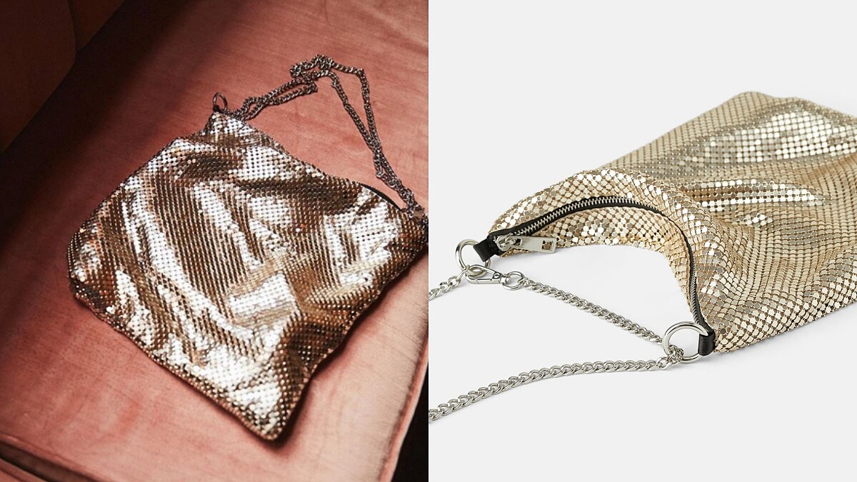 再來這一類型的包款無疑是時下諸多時尚達人的必備款式,而它就是由金屬網眼製作成的包包!柔軟的身軀+閃耀的光澤面,就算是與平日造型混搭上也超級合適,簡樸中帶有華麗質感氛圍完全超時髦!(售價NT1,290)