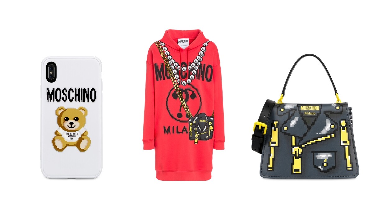 Moschino與Maxis™美商藝電開發的超夯電玩「模擬市民」(Sims™) 推出聯名系列,消息一出讓雙方粉絲都瘋狂,以超經典的"都會生活"場景為靈感,不但形象影片製作成電玩中的模樣,單品設計上也充滿電玩風格,利用低像素的馬賽克重新詮釋經典小熊、Moschino logo,褲子、上衣也用馬賽克繪上口袋等圖樣,連貫穿模擬市民中最重要的精髓-綠水晶也成設計元素,變成連身泳衣,還有可愛的粉紅冷凍兔上衣也會出現在遊戲中,玩家們可別錯過。