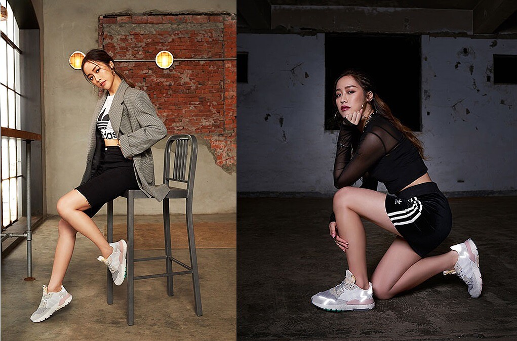 正裝與休閒的混搭大勢穿著簡直瘋迷全球時髦精,Tammy的日間裝束選擇以復古格紋西裝+adidas Originals Logo T Shirt+五分及膝牛仔褲,配上全新白粉系的NITE JOGGER,跟時裝周街拍有著相同讓人驚豔的穿搭技能,營造出屬於白天的時尚風貌,完美秀出歐美潮人的品味感。夜晚又可以瞬間因為反光材質設計而散發出存在感滿滿的時髦魅力,讓球鞋穿搭風格有更令人讚嘆的多種變化,絕對是本年度最必備的話題鞋款。