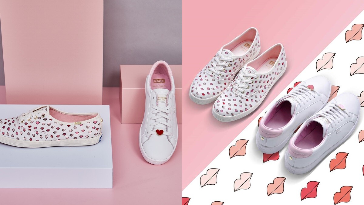 在全系列中還有2雙是以Kate Spade擅長的繽紛畫風打造而成的鞋款,其中一雙是以純白帆布鞋加上紅色及粉色唇印圖案,另一雙則是ACE皮革鞋款搭上粉嫩配色後跟,在鞋帶部分則有紅心與唇印扣飾,最近有想添購新鞋的女孩,絕對不能錯過這次的Bridal Collection聯名系列。