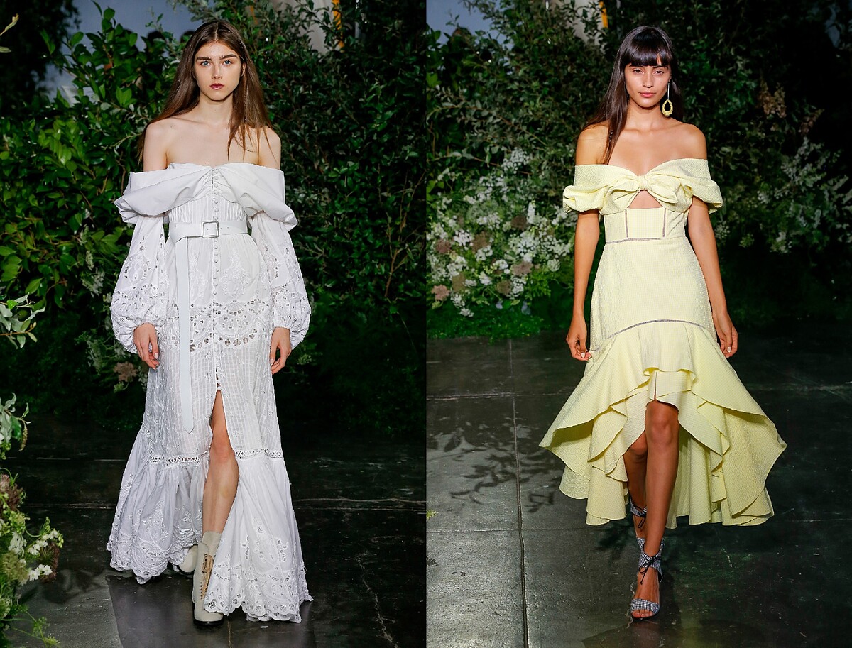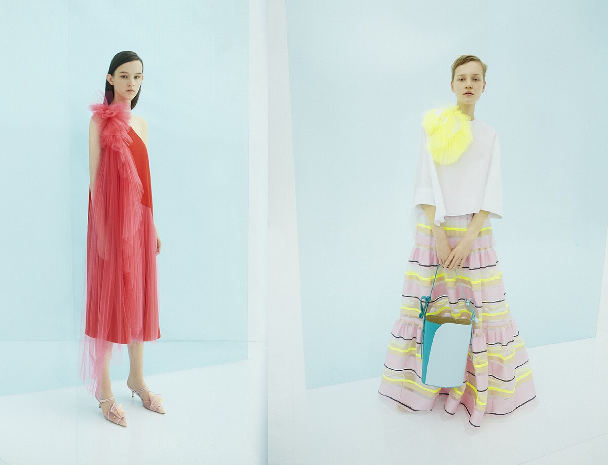 美國紐約設計師品牌Jonathan Simkhai是超模Kendall Jenner、Gigi Hadid、紐約名媛Olivia Palermo、歌手演員Lady Gaga與好萊塢女星Anne Hathaway御選的街拍或是紅毯著裝品牌。2019春夏系列延續其標誌性的鏤空刺繡雪紡紗裙設計,以手工鉤織的技法處理高級密織綿布,將凸紋花邊或是流蘇花邊綴飾於領緣、胸口、袖子或是裙擺,精美且細緻。顏色則以檸檬黃色、櫻桃粉色、天空藍色、淺白米色等漸層色彩渲染,展現女人性感婀娜的身段,又透露著女性靜謐悄然的氣質。