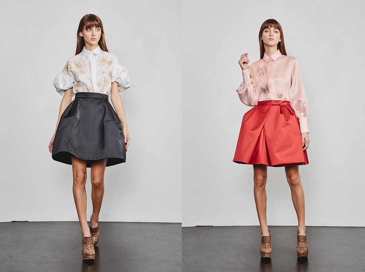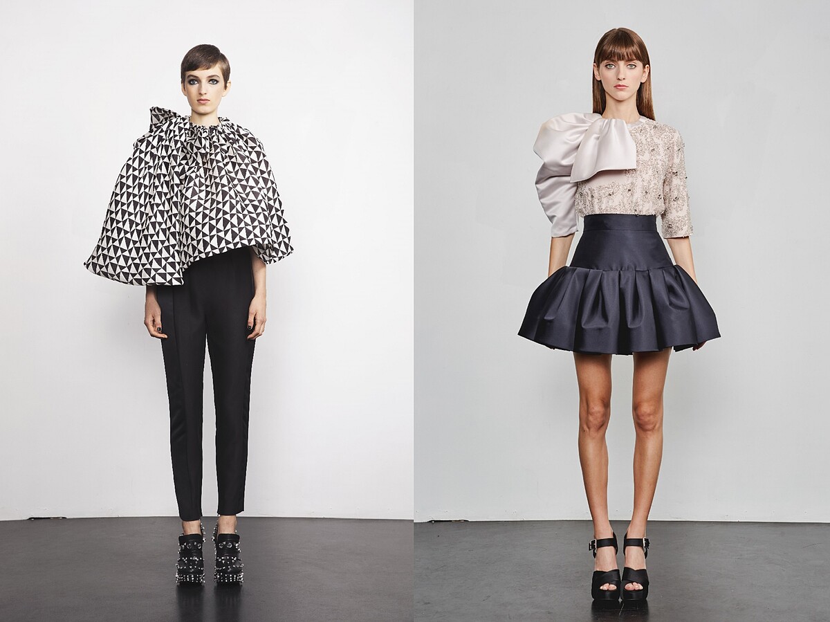 由土耳其姊妹Ece Ege 與 Ayse Ege於1992年成立的巴黎高級時裝品牌Dice Kayek,設計靈感融匯伊斯坦布爾的傳統與巴黎的現代、奢華與簡約,在矛盾與和諧之間取得平衡。春夏系列以多款黑白幾何圖騰揭開主題,將反重力摺邊和裙擺彰顯其立體的建築線條,大量運用於褲子、真絲斜紋襯衫、袖子、肩膀線條與透明烏干紗禮服。