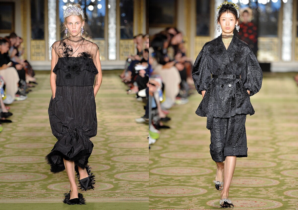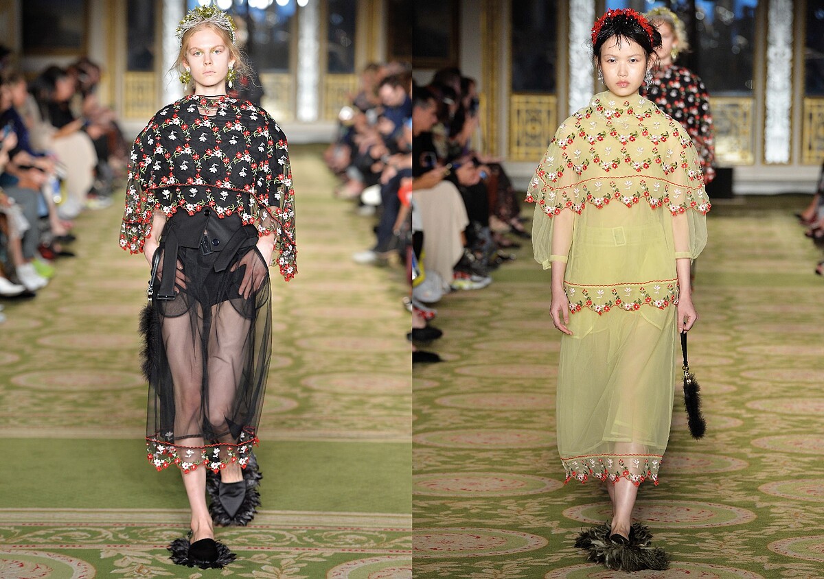 Simone Rocha 2019春夏系列靈感源於設計師本人的香港血統。出自對於中國文化濃厚的興趣,偶然於香港市集尋獲一幅唐朝仕女臨摹畫作,以及傳統對於中國節日清明節的敬畏,透過服飾、頭飾、配件到秀場妝容揭開東方世界的面紗,並以神秘的文化體驗之旅探索自己對於中國文化的懷舊情懷。延續其拿手的浪漫式泡泡袖設計與寬鬆的廓形,在服飾配件上運用大量東西方的臻美奢華元素、神祕氛圍的斗笠寬簷帽,體現設計師引以為傲的繁複裝飾性美學。