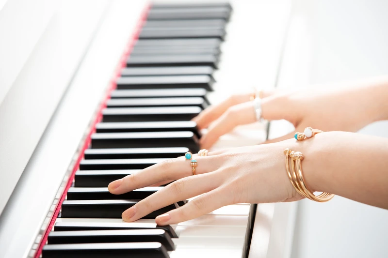 PIAGET Possession系列:全新玫瑰金鑲鑽圓形耳環、18K玫瑰金,18K玫瑰金鑲嵌美鑽墜鍊、綠松石18K玫瑰金鑲嵌美鑽墜鍊、青金石雪花式鑲鑽墜鍊;(右手) 18K白金鑲鑽戒指、18K玫瑰金鑲鑽戒指、18K玫瑰金鑲嵌單鑽及青金石幸運手鍊;(左手)綠松石18K玫瑰金鑲鑽戒指、綠松石18K玫瑰金手鐲、18K玫瑰金鑲嵌美鑽手鐲、白玉髓18K玫瑰金鑲嵌圓鑽與鑲鑽手鐲。