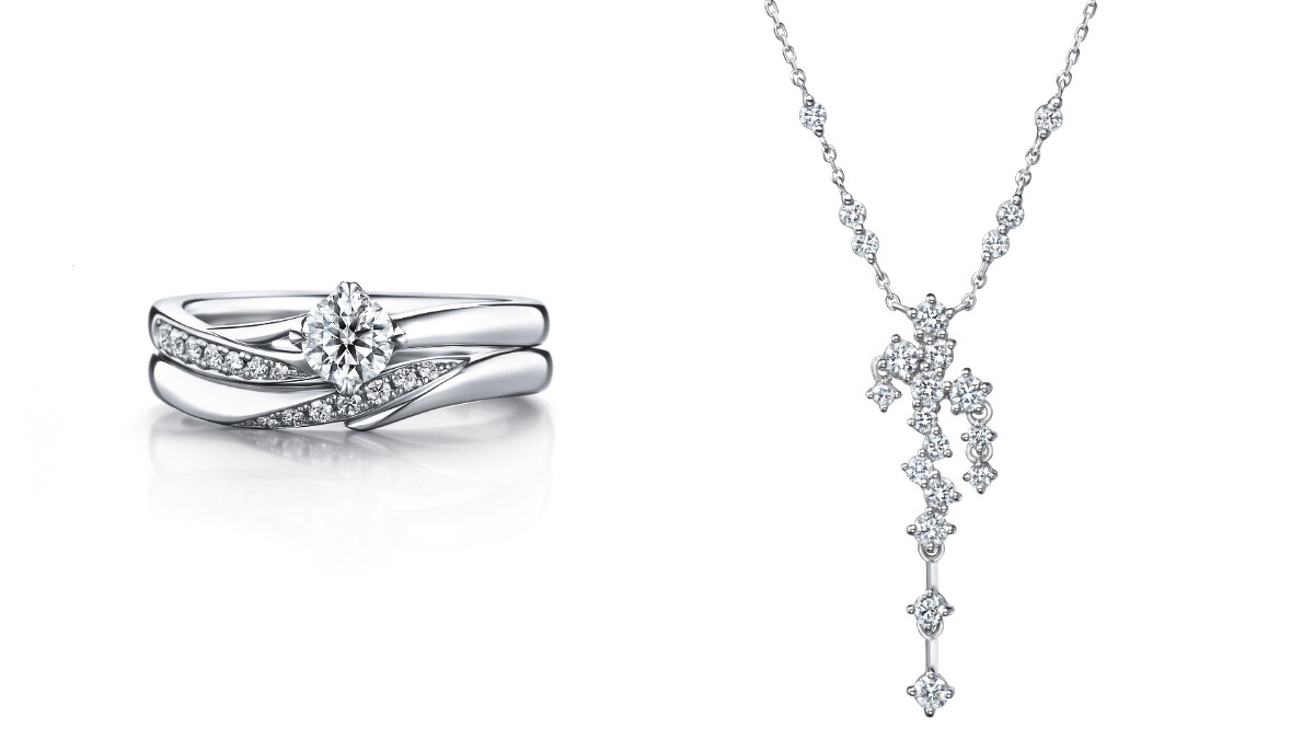 (左)結婚套戒Plough&Nocturnal、(右)20週年紀念項鍊ILLUMINARE