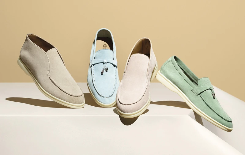 Open Walk和Summer Walk是Loro Piana品牌標誌鞋款,最初乃為創辦人本人為了航海運動而設計,如今也完美運用於都市生活。以往布爾喬亞們總喜歡坐遊艇出海遊玩,而他們為了怕鞋子混淆,往往會在鞋底寫上自己的名字,創辦人也以此想法設計出這款便鞋,並且留下了可以寫上名字的設計,因而成了對航海充滿熱情的運動愛好者而設計的時尚配飾,其舒適輕盈且簡潔俐落的鞋型,更使它迅速走紅。經典設計使其成為多功能百搭鞋款,可以是搭配休閒服裝的點睛之筆,亦可是搭配正式服裝的理想選擇。