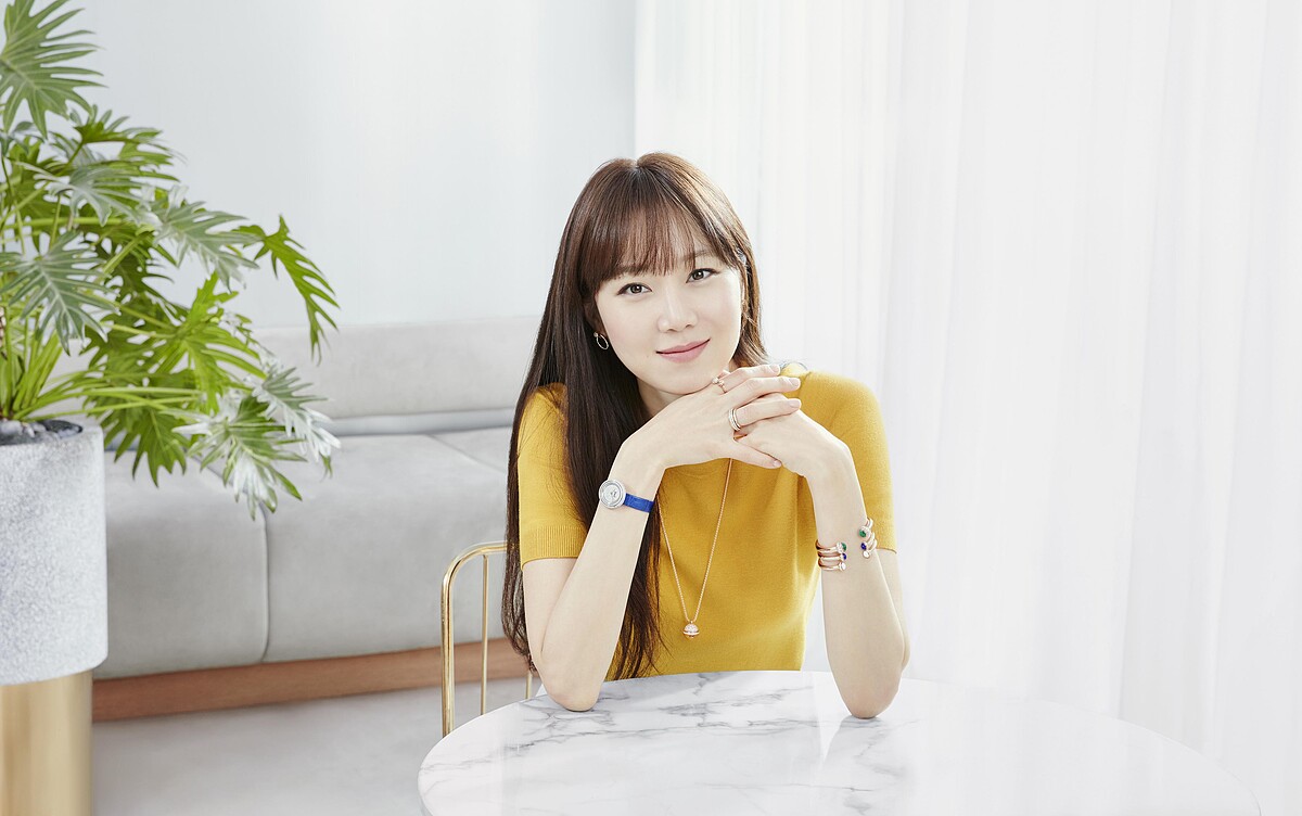於這次拍攝的形象影片中,孔曉振選擇了伯爵Possession系列中的錶盤鑲鑽腕錶搭配開口式手鐲、鑲鑽墜鍊、耳環以及各式指環,陪伴她度過晴朗的午後時光,展現都會女子從容自在的一面。