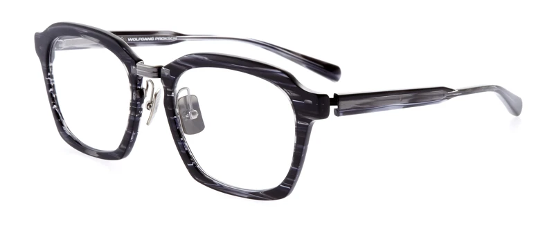 如同 Wolfgang 一直以來的堅持,全系列鏡框皆以β 鈦搭配專利鉸鏈設計,運用材質的柔韌保證配戴的舒適與彈性;鈦製的鼻托則以俐落的線條勾勒時尚感,並精製品牌縮寫「WP」,注重細節堆塑無可取代的高訂質感。