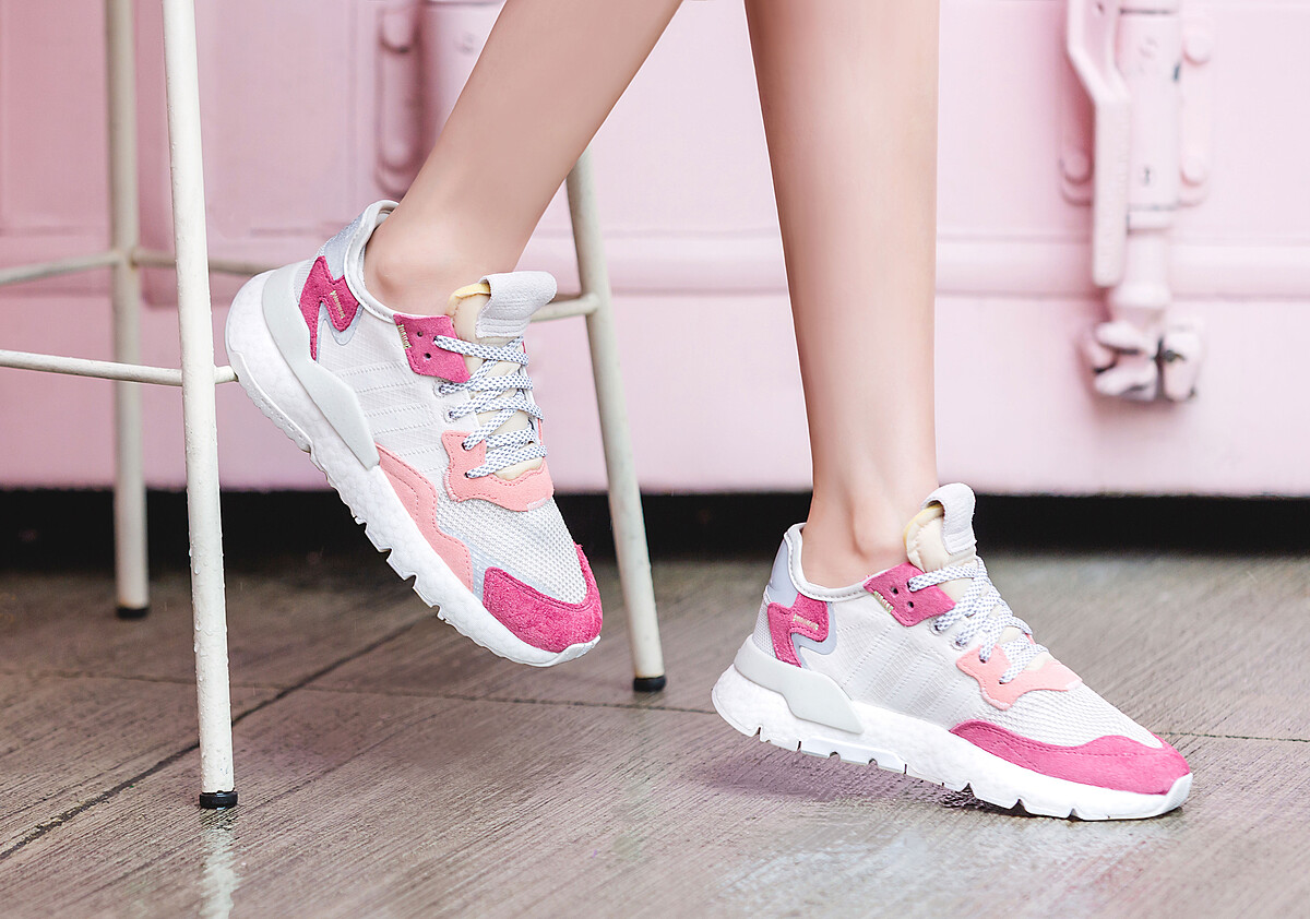 桃紅色╳薄荷綠簡直是夏日最美色調的絕配組合!佳歡腳上這款全新桃紅配色的NITE JOGGER,和若凡一樣在灰白主色調中融出挑色彩,但是是以桃紅與粉紅的深淺層次配色來呈現,讓甜美女孩氣息來得全面又不過分甜膩,即使是搭配帥氣感滿滿的造型也毫無違和感,是這個夏天想要嘗試粉紅色鞋款女孩們的最佳入手單品!