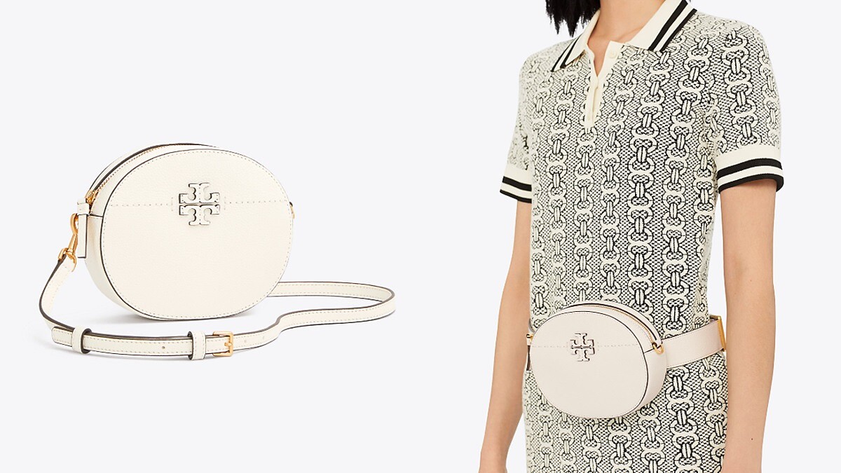 同樣是紐約設計師品牌的Tory Burch,將雙T LOGO的McGraw包款打造成可以兩用的腰包,搭配寬版的粗腰帶就能繫在腰上,也能自由轉換成細揹帶的斜背包揹法,而象牙白的色系更叫人無法抵擋。(約NT7,750)