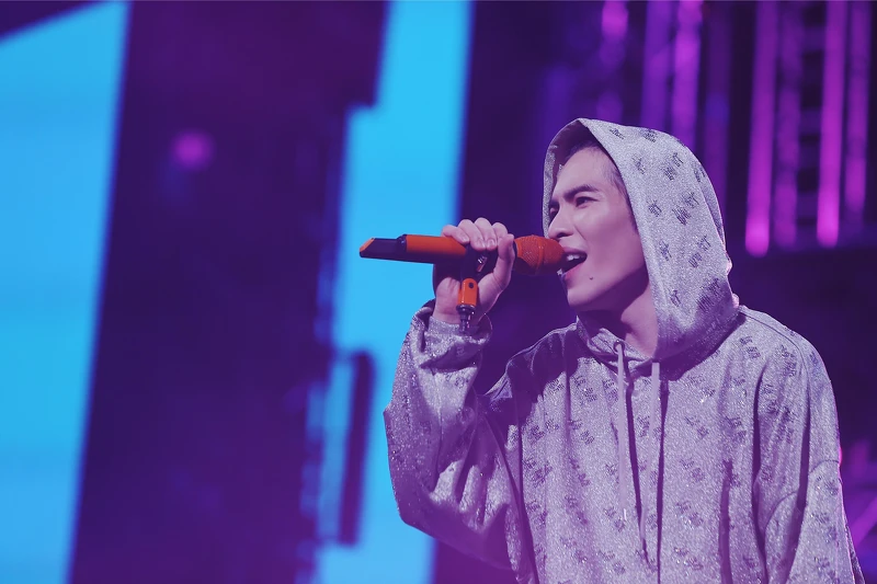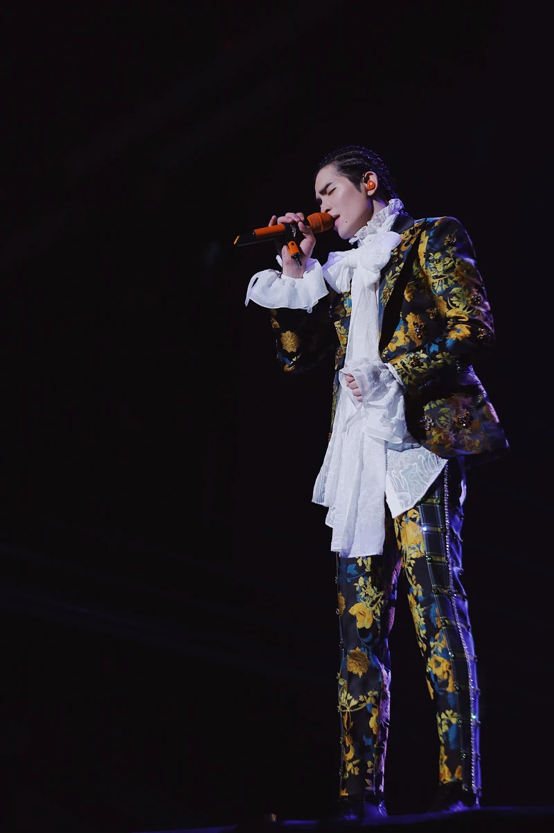 最後一套則是滿版水鑽H&M Logo的銀色運動套裝登場,水鑽更是用白、灰、黑三種顏色製作,呈現華麗視覺感,寬鬆剪裁讓老蕭能在舞台上唱跳自如,最適合做為安可曲裝扮。