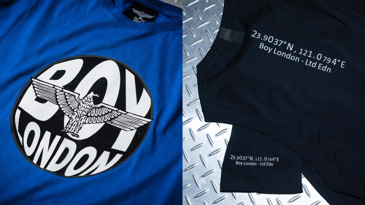 為了持續耕深Boy London在台灣潮流界的地位,品牌特地將台灣的經緯度座標「23.9037° N, 121.0794° E」融入設計中,從衣袖到上衣的背面,均可看見這印有台灣座標的符碼,而這些座標更經過特殊的反光處理,使穿著時都能閃爍強烈的街頭氣息!標籤也特別採用了螢光領標,呼應並突顯叛逆的態度。此外,Boy London經典的老鷹商標也改以手繪仿塗鴉效果呈現,展現獨具的新鮮感。