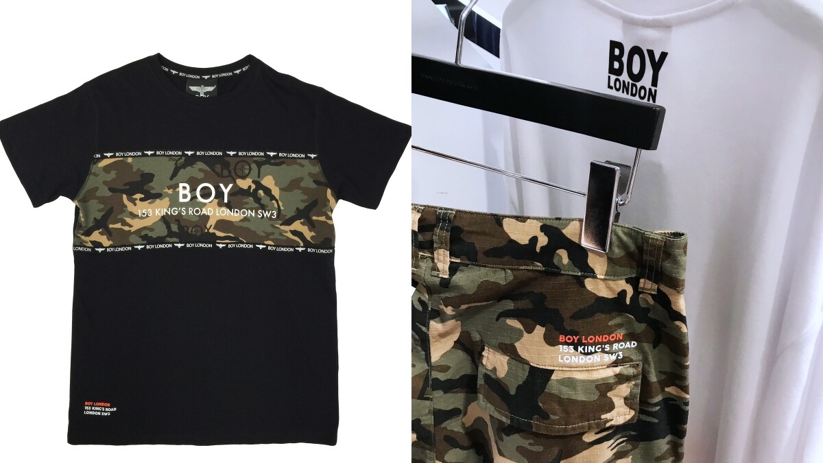 迷彩一直以來都是許多潮流品牌採用的設計元素,而今年春夏Boy London也將這充滿野性氣息的花印融入設計,同時搭配上標誌性的老鷹圖像、BOY字樣、醒目的亮橘色,共組出充滿率性且自由氛圍的城市休閒裝。