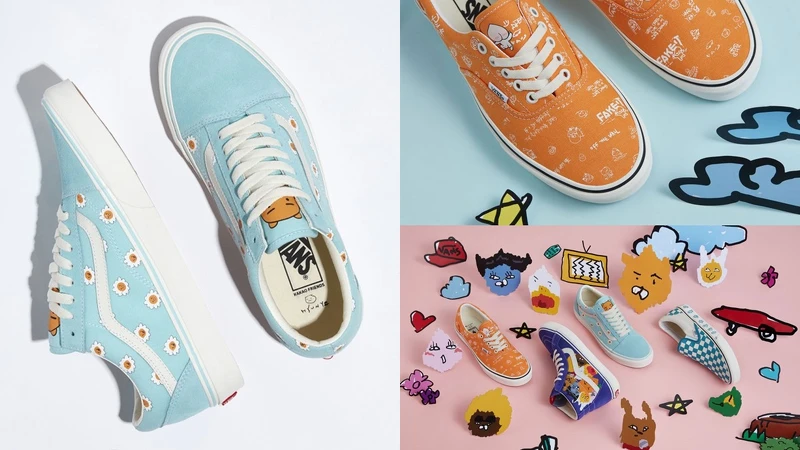 大家熟悉的角色包含萊恩、桃子、醃蘿蔔、醃蘿蔔的寵物鱷魚、自戀短髮貓、醜小鴨、JAY-G以及狗FRODO,全部出現在這次的聯名系列中,像是經典款OLD SKOOL、高筒款SK8-HI以及熱賣的SLIP ON懶人鞋都能看見他們的蹤影。