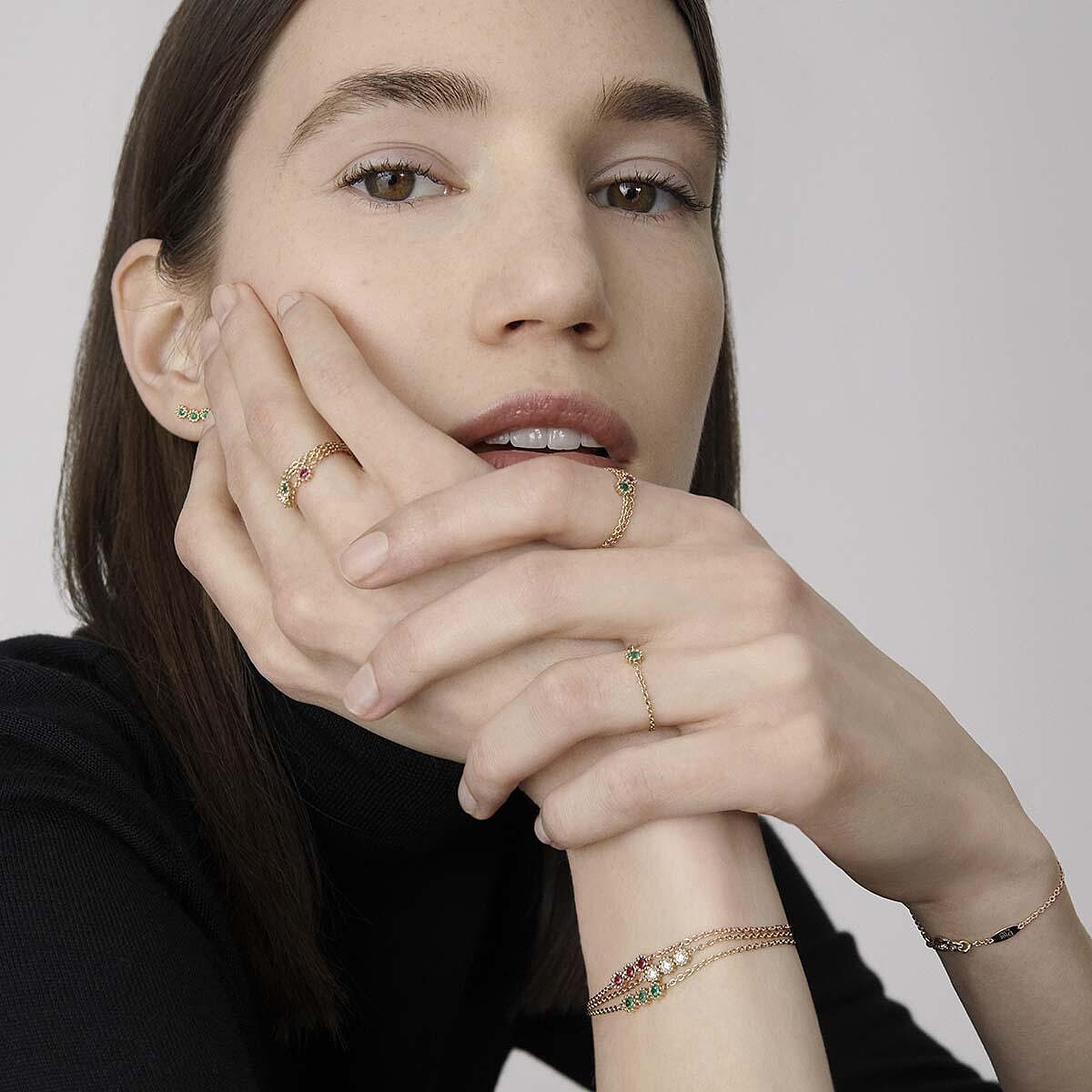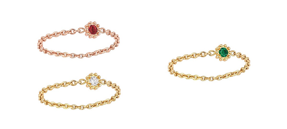 Mimirose微型戒指, NT27,500(玫瑰金紅寶石、黃金鑽石、黃金祖母綠)