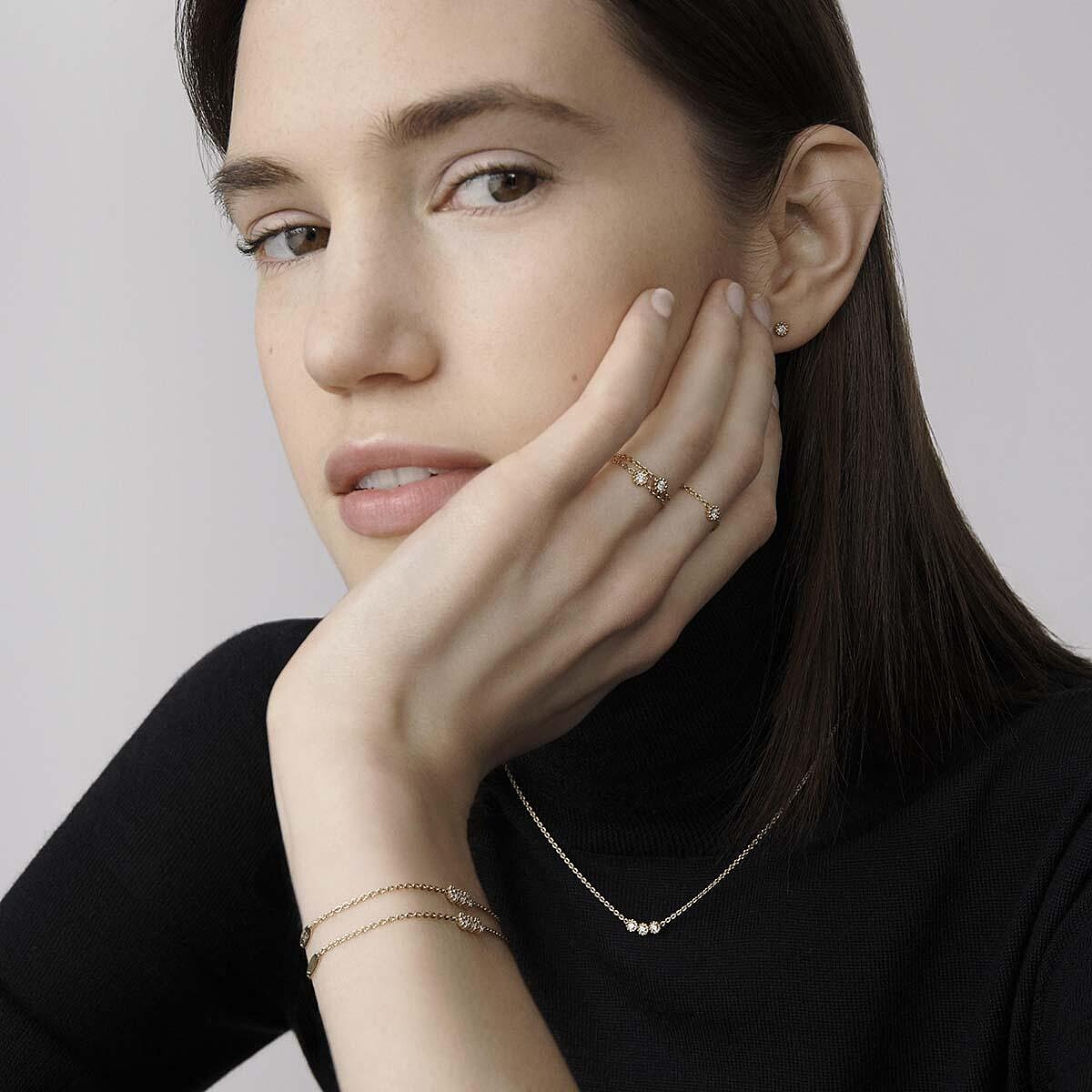 集結了戒指、耳環、項鍊、手鍊,擁有單顆寶石與三顆寶石不同款式,多變的風貌不但適合同系列混合搭配,更能與其他原有的Dior輕珠寶交錯混搭成自己的風格。層層疊戴而上的戒指,可以對稱或是打破規則,帶來無限可能性;如閃亮鉚釘般的耳環也可以單邊佩戴,或選擇單顆寶石與三顆寶石不對稱戴法;纖細的手鍊與項鍊則交織出個性態度,時髦的金色調不僅是炎炎夏日裡的活力點綴,精緻質感塑造出貼身觸感,更無拘於場合或穿戴的限制。