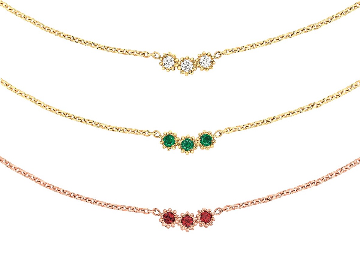 Mimirose項鍊,NT70,500(黃金鑽石、黃金祖母綠、玫瑰金紅寶石)