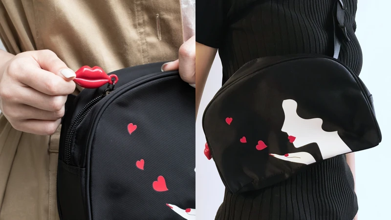 而繼去年與7-11共同合作的集點活動受到廣到迴響後,Lulu Guinness今年在為此活動推出全新三款「漫天飛吻」手袋,分別是兩用托特包以及兩款不同造型的腰包,上頭均有著復古俏女伶的輪廓肖像,搭上飛吻展現自信且迷人的一面,此外,拉鍊的設計更採用了立體紅唇,替整體添增不少俏皮感。