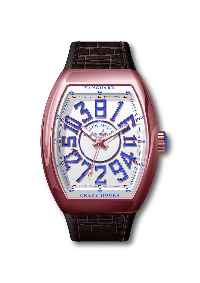 Vanguard Crazy Hours Lady腕錶則為高雅女性加添精緻趣味。錶盤上的浮雕數字時標與寶石仿如在時光中翩翩起舞,造型優雅迷人。錶盤合共鑲嵌逾200顆白鑽及80顆玫瑰寶石,與錶殼鑲嵌閃爍奪目的鑽石完美配合,令腕錶更顯瑰麗典雅。