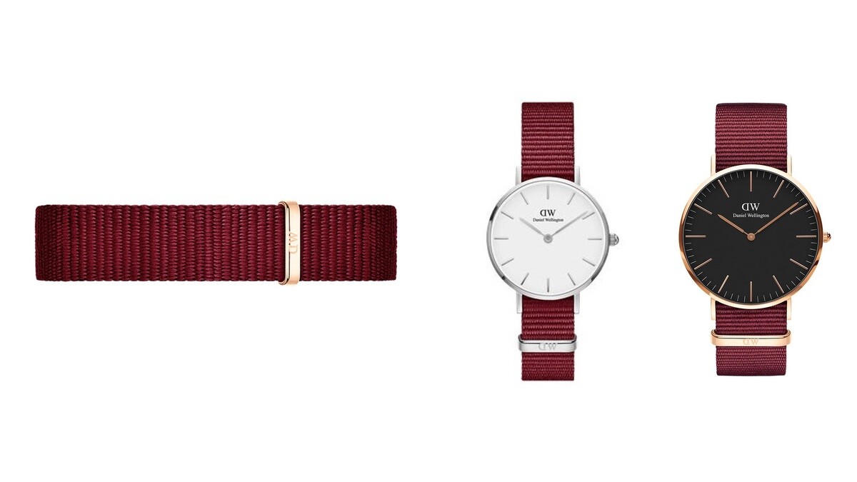 前陣子首度推出全新戒指系列,讓Daniel Wellington的產品線更加完整,現在又有新色錶帶問世,以高級寶石色調為靈感,打造寶石紅的帆布錶帶,並搭配玫瑰金飾邊、銀色飾邊的手錶。