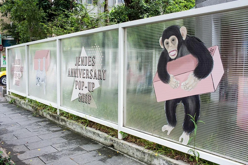 首先就是JENDES首度打造實體快閃店,就座落在台北民生社區的透明公園(台北市松山區民生東路四段131巷15號)裡,從7月3日至7月8日,為期六天。粉紅色的店面設計,不但外牆有超可愛的「星期動物」塗鴉、做成像雜誌樣貌的「JENDES週年主題鏡」,店內還有粉紅扭蛋機,每個角落都超適合大拍IG美照!