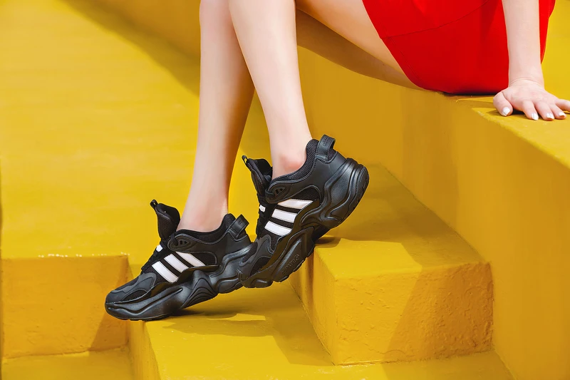 Magmur Runner鞋款既復古又充滿現代流線感的外型,在時尚圈和潮流圈頗受到品味人士的好評,黑色基底╳白色三條線的配色最是簡約好搭,同色卻層次分明的線條設計更是彰顯出時髦品味人士最獨特的選物態度,如果妳最近也沉迷厚底鞋無法自拔,那這款Magmur Runner就是接下來的進階版首選。