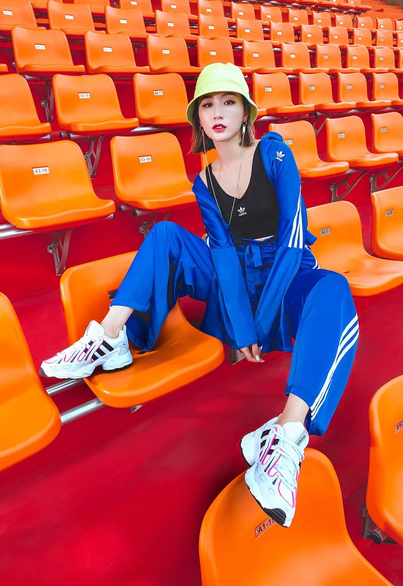 雀斑Pick的則是張力十足的adicolor寶藍色系緞面的成套運動套裝搭配,外套自手肘處的寬襬水水袖設計,則將今年春夏時裝周的”浮誇袖子元素”給完美運用其中,一穿上身就是視覺聚光燈的最炫焦點,徹底將時尚與潮流一次結合!