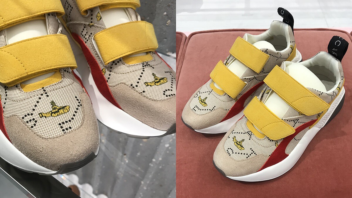 最經典的黃色潛水艇圖案也出現在服裝、配件上頭,像是Stella McCartney熱賣品項之一Eclypse人造軟皮運動鞋,就推出這雙紅、黃、米色麂皮拼接的限量版,結合Stella McCartney經典LOGO及厚底設計,絕對是樂迷們必收藏的鞋款。(售價NT21,700)