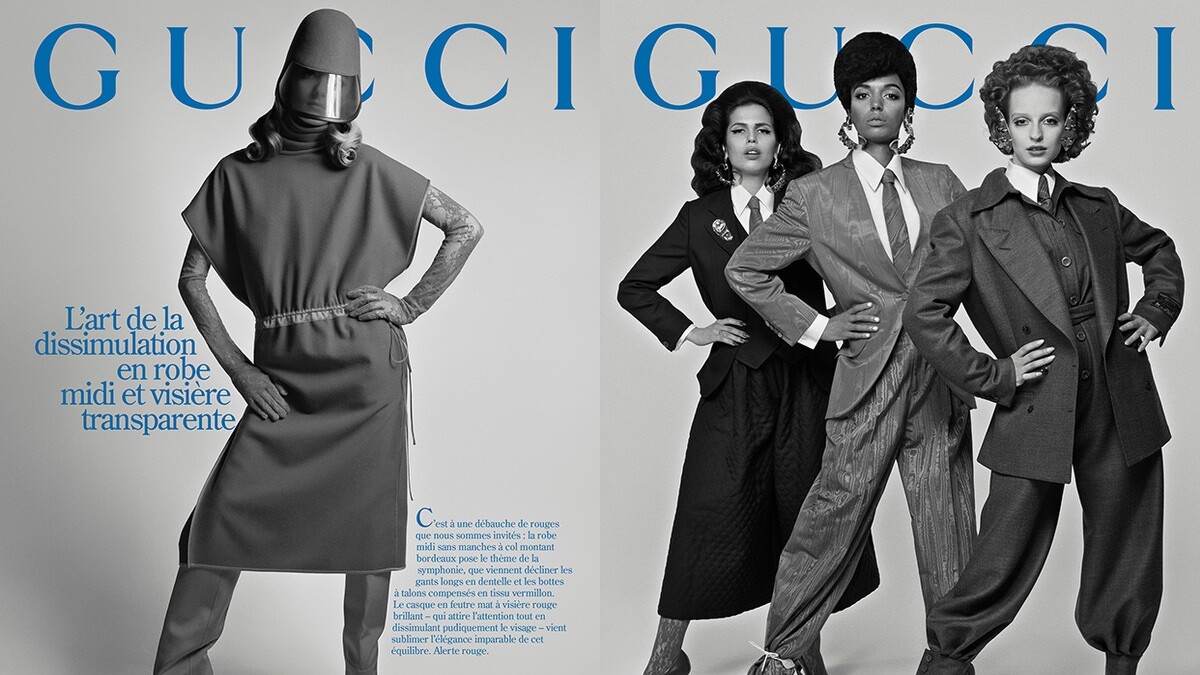 從形象廣告中可以看見,橫空出世的PrêtÀPorter找出了被視為理所應當的手法與構思,抽絲剝繭地呈現出時尚傳說的脈絡,縱觀四個年代(50、60、70、80年代)的經典圖片在Gucci品牌創意總監Alessandro Michele的解讀下,成為現代感十足的概念集錦。